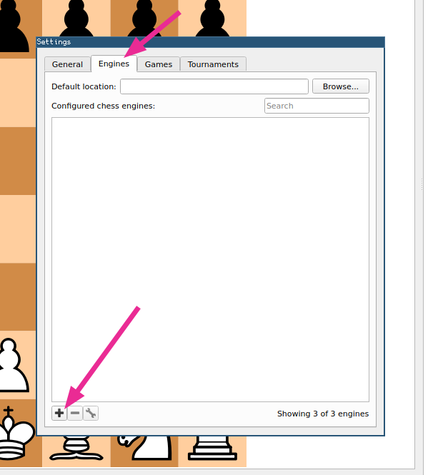 1. In the window that appeared, select “Engines” tab, and then click “➕” to add a new engine: